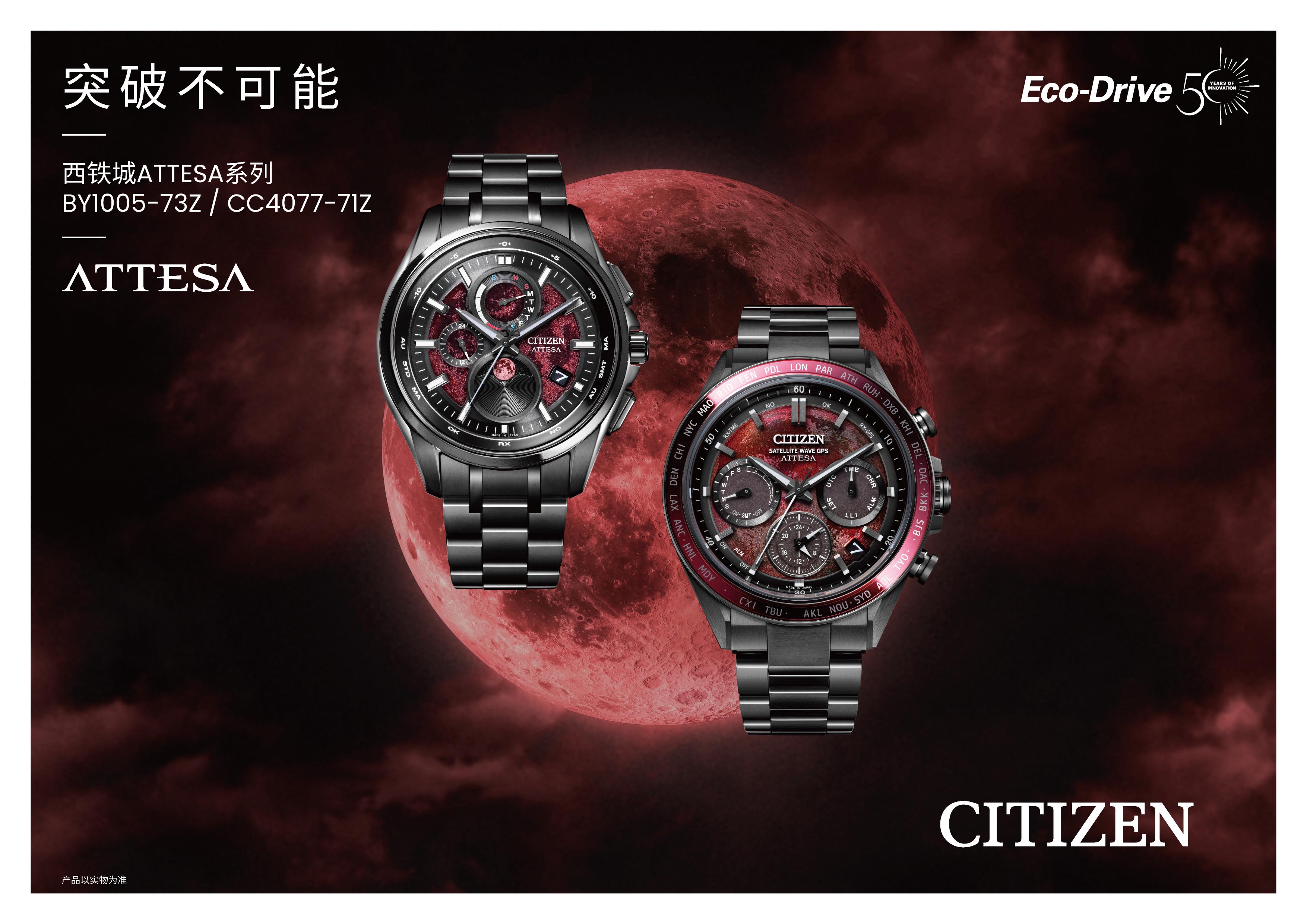 2026年,恰逢西铁城光动能腕表问世50周年。五十年前,西铁城以“光”替代电池,开启腕表能源革命;五十年后,我们依然以光为媒介——这一次,是捕捉三十八万公里外反射而来的月光。月全食是光的缺席,亦是光的别样在场;正如腕表本身,看似记录时间的流逝,实则是将流动的时间截取为可佩戴的永恒。