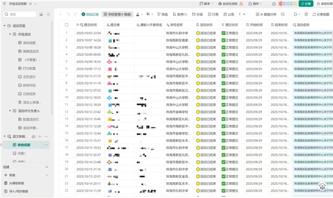 教研管理的提效,是这场数字化变革的另一个目标。通过引入多维表格与智能表单工具,教研中心为区域教研管理构建起高效运行的“自动化引擎”。课题评审、科研项目管理及证书发放查询等行政业务均实现了自动化与标准化。