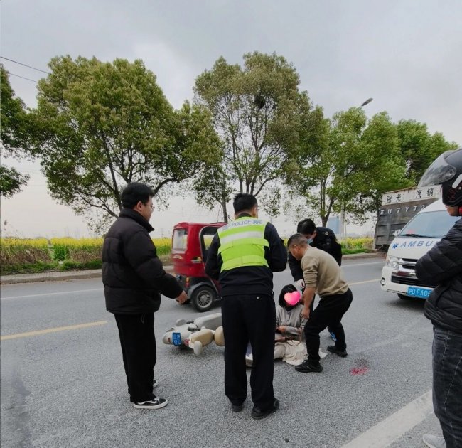 事发路段车流量不小,围聚的人群越来越多。在等待警察和救护车的过程中,两人轮流站在来车方向的安全位置,抬手示意过往车辆减速避让,疏导现场交通。十几分钟后,救护车和警车抵达现场,两人主动上前配合救助工作,看着伤者被顺利抬上救护车,确认没有需要协助的事宜后,才默默离开。