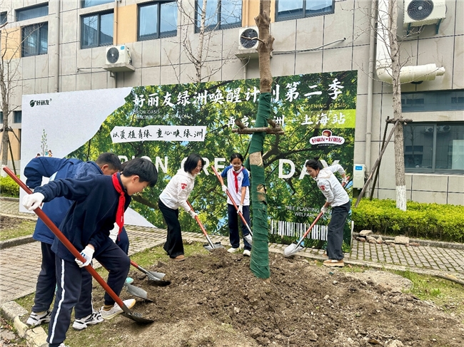 目光从华北平原转向江南水乡,在上海师范大学附属青浦实验中学及小学,另一场关于生机的约定也在进行着。好丽友员工志愿者们与学校师生携手建立“秋实园”,栽种乌桕、桂花、石榴、晚樱、红枫、蜡梅等十余种树木。这些树种的搭配别具匠心,致力于让校园四季充满生机,不但丰富了校园的生物多样性,而且在学生们心中种下爱护自然、敬畏生命的种子。