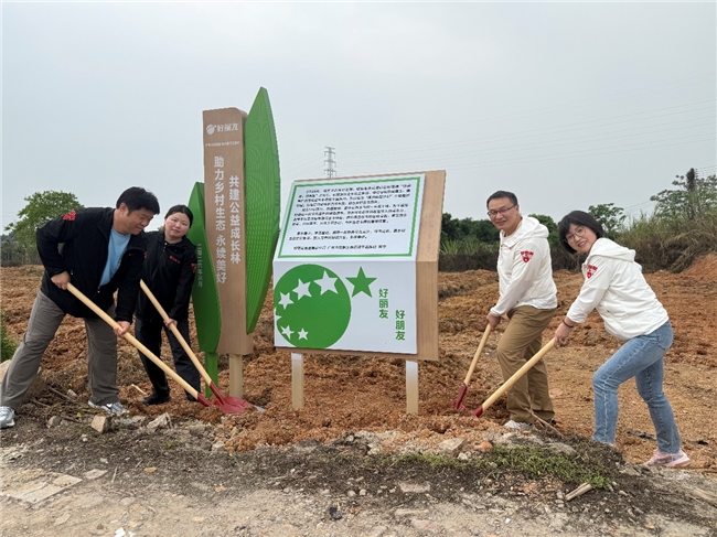 循着绿意继续南行,抵达广州。在花都区工厂附近的赤坭镇下连珠村,好丽友员工们并肩挥锄、刨地翻土,种下150余棵嘉宝果树,这一树种终年常绿,树形优美,果实晶莹剔透,在有效美化乡村环境、改善区域生态的同时,兼具经济价值。“想到这片荒地今后会变得郁郁葱葱,就觉得今天的汗没白流”,一位员工边擦汗边说到。好丽友用实际行动让“邻里守望”的村企情谊在片片绿叶的联结下和谐共生,也是政企携手、共筑美丽乡村的有益探索。