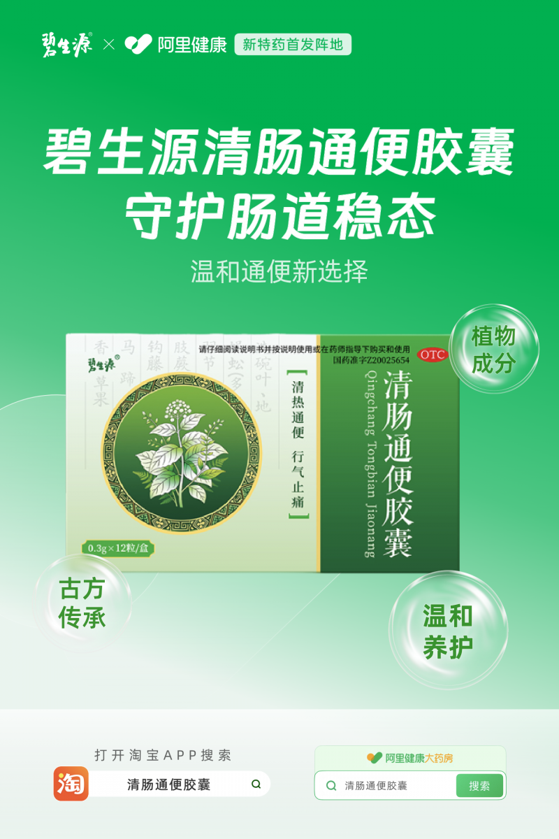 3月30日,碧生源旗下清肠通便胶囊在阿里健康线上首发。该产品是一款基于云南彝族地区民间验方开发的中成药,其组方核心为地方特色药材“洗碗叶”,主治中医辨证为“热结气滞”所致的便秘。