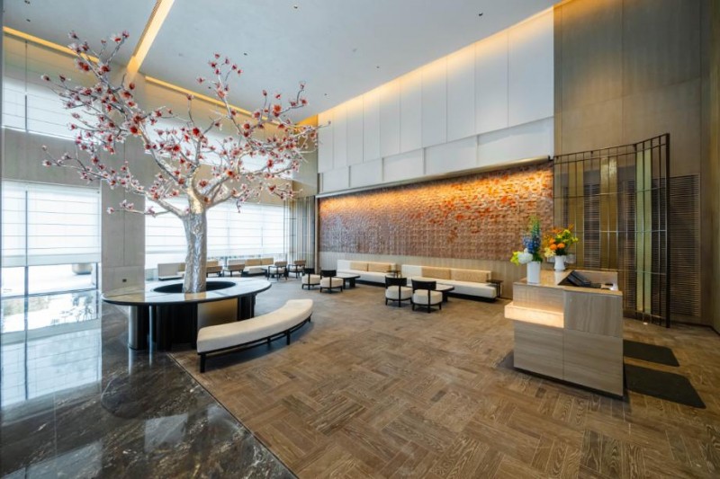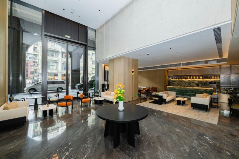 酒店大门以展开的书卷为造型,推门而入,仿若翻开一部厚重的城市文化典籍,温润的光影与雅致的书香扑面而来。