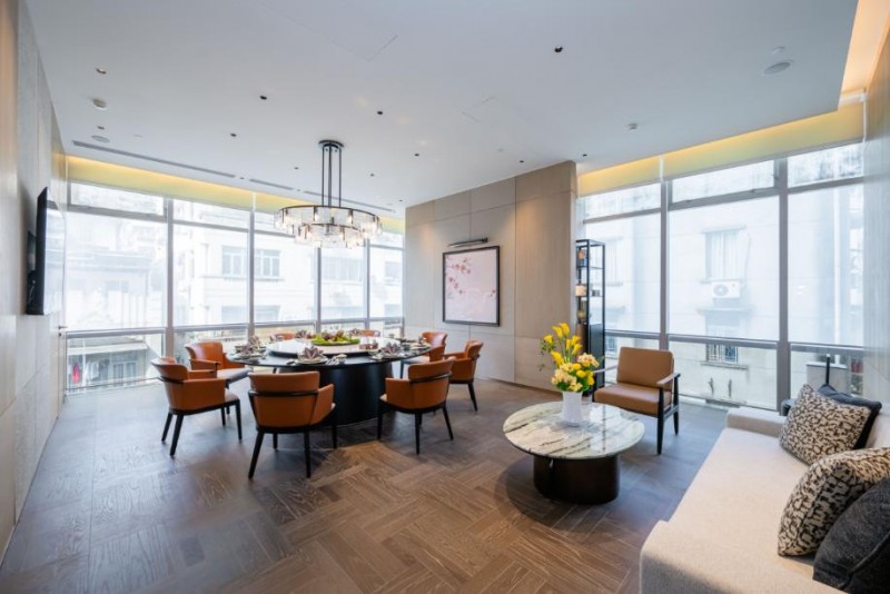 酒店配备超2,000平方米会议空间,含层高近6米无柱宴会厅及多个多功能会议室,依托越秀集团精细化改造优势,空间灵活、智能完备。会议室融入线装书、印版木材等文化元素,搭配先进影音设备,兼具人文底蕴与专业便捷,可承接高规格政务、商务及文化活动,彰显尊崇礼遇与格调。