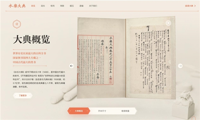 据介绍,《永乐大典》高清数据库由国家图书馆委托国家图书馆出版社建设,入选2021年国家古籍数字化工程首批立项项目。2021年12月,国家图书馆出版社委托北京大学数字人文研究中心承担该项目设计与研发工作。该中心以“北京大学-字节跳动数字人文开放实验室”为基地,整合北京大学和字节跳动资源,组建联合设计与研发团队,建成这座《永乐大典》“数字图书馆”。