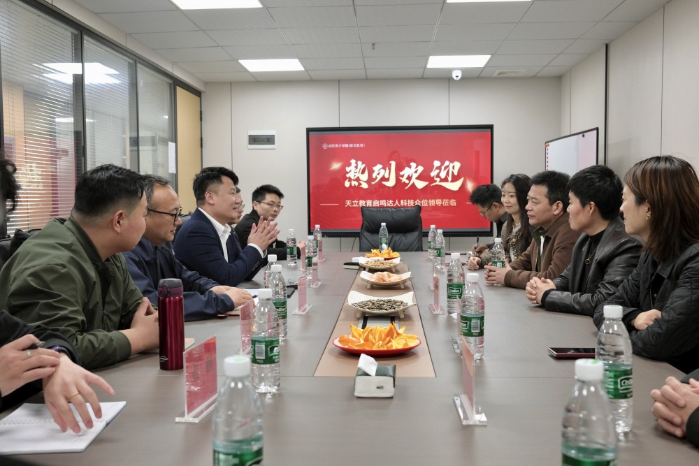 在为期两天的行程中,天立国际智慧教育公司总裁罗永强,天立国际集团投资发展事业部总裁戴彧,天立国际教育集团总校长助理、天立启鸣副总裁郭井芳,天立国际集团投资总监王彩霞,与武汉博才学校董事长汪洋、校董事钟洋、校领导赵凯、聂鹏等双方核心管理团队共同出席相关活动,围绕AI如何赋能高考展开深度交流,并正式签署合作协议。