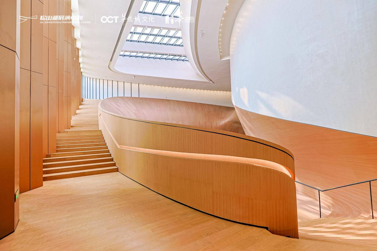 内部空间设计同样匠心独具。展演中心设有1200座大剧院、400座多功能厅、3500平方米大展厅及1200平方米美术馆,是东莞首个集剧院与展览于一体的双功能文化综合体。大剧院采用国际领先的声学设计,能够满足交响乐、歌剧、音乐剧等多种演出形式要求;多功能厅灵活可变,可适应各类中小型演出及发布活动;展厅与美术馆则为视觉艺术提供了专业的展示空间。未来,这里将全面满足区域内高端文艺展演、企业交流、大型展览等多元复合型文化需求,成为名副其实的“湾区文化会客厅”。