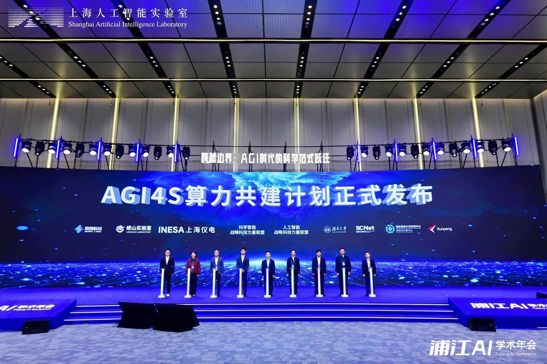 由人工智能战略科技力量联盟、科学智能战略科技力量联盟牵头,上海AI实验室与湖南大学国家超级计算长沙中心、上海仪电(集团)有限公司、国家高性能计算机工程技术研究中心曙光智算信息技术公司、国家超级计算深圳中心、崂山实验室、鲲鹏计算领域、思朗科技共同启动AGI4S算力共建计划