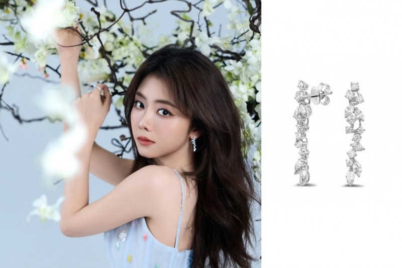 谭松韵所佩戴的 La Promesse 系列马眼形钻石耳环,以榄尖形爪镶马眼钻与圆钻交织垂落,仿若春日瀑布般流动于耳畔。钻石在光线中层层递进,映衬她温润灵动的气质,如枝头初绽的花序,将“承诺”这一主题化作细腻而恒久的光芒。