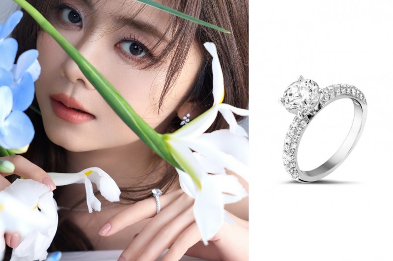 指间佩戴的 Eclipse 系列单钻戒指,双排密钉镶戒臂托举中央璀钻,光芒纯粹而庄严。它不仅象征真挚情感与不朽承诺,也在举手投足之间散发沉静而坚定的力量——如春光初升,不张扬,却始终清晰可见。
