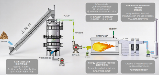 宝杰科技生物质气化供热(蒸汽/导热油)系统图