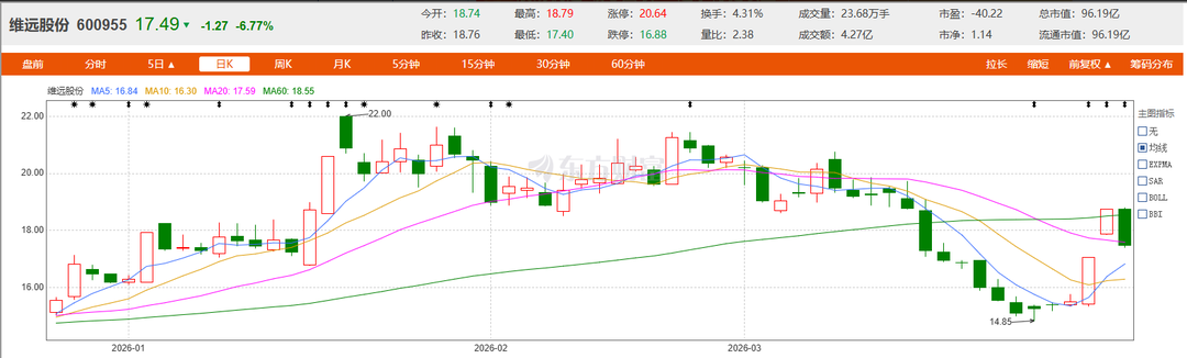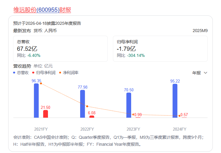 值得注意的是,维远股份此前发布2025年年度业绩预亏公告,预计2025年实现归属于上市公司股东的净利润为-9.5亿至-10.5亿元,由盈转亏,其中部分长期资产、存货等计提减值准备影响归属于上市公司股东的净利润约-6.3亿元。