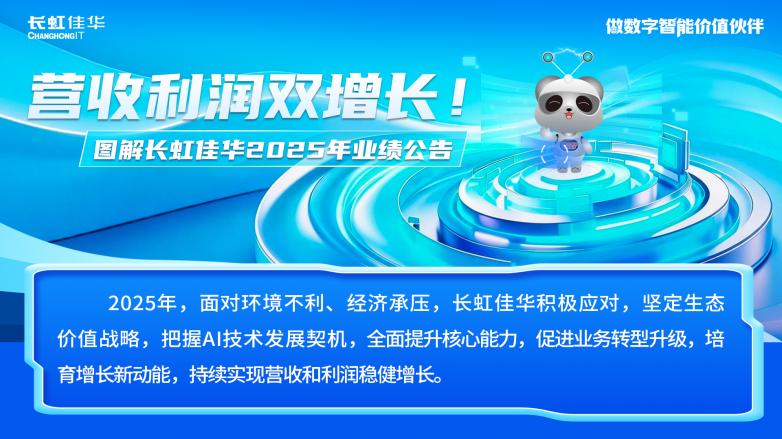 2025年,面对复杂外部环境,长虹佳华坚持生态价值战略,聚焦AI技术发展契机,推动业务转型升级,实现全年营收与利润双增长。