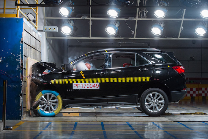 尖利的警示声随即响起,这台探界者以每小时50公里的速度径直撞向完全由钢块组成的刚性墙。“砰”的一声巨响过后,这辆探界者在上汽通用汽车泛亚技术中心安全实验室完成了它的“中国首撞”,整个过程仅耗时0.12秒。
