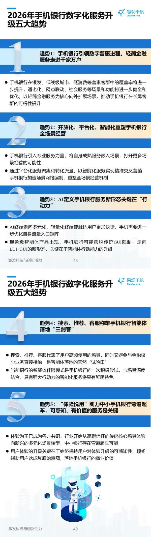 四是搜索、推荐、客服成为智能体落地“三剑客”,与金融场景深度结合、具备强大行动能力的智能化服务将成为行业创新核心方向;