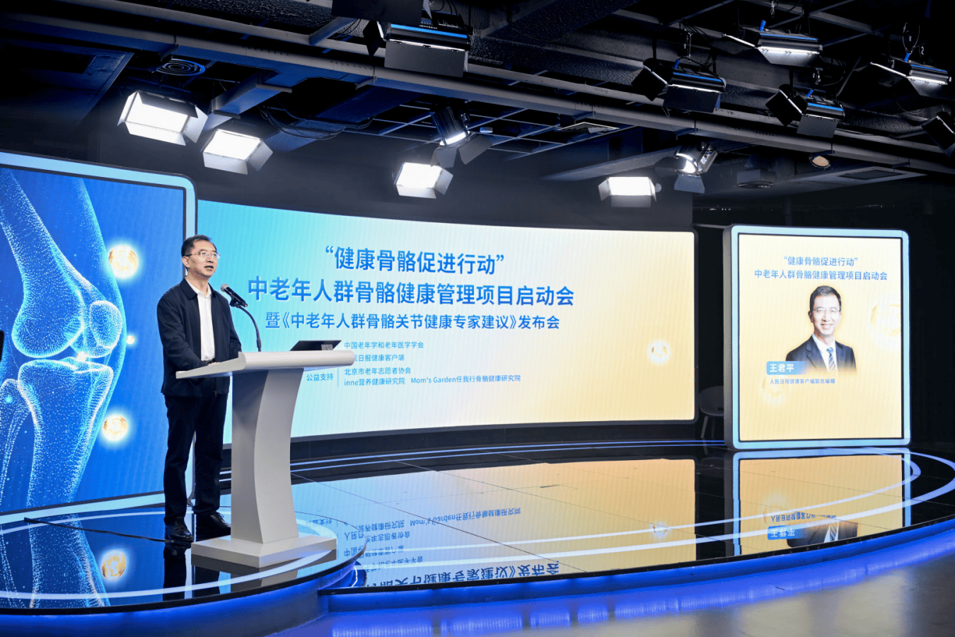 3月29日,人民日报健康客户端副总编辑王君平在《中老年人群骨骼关节健康专家建议》发布会上致辞