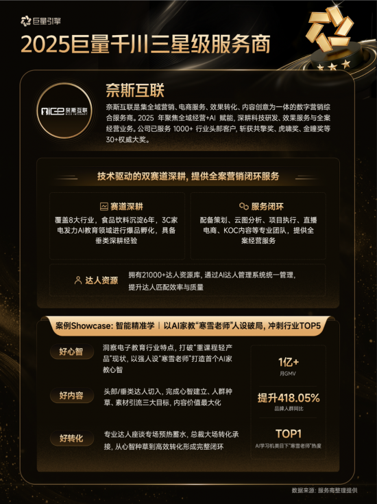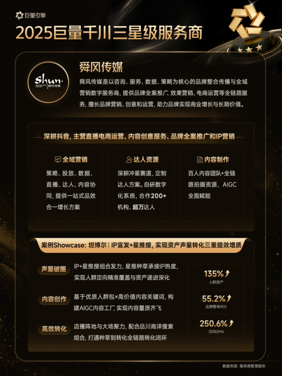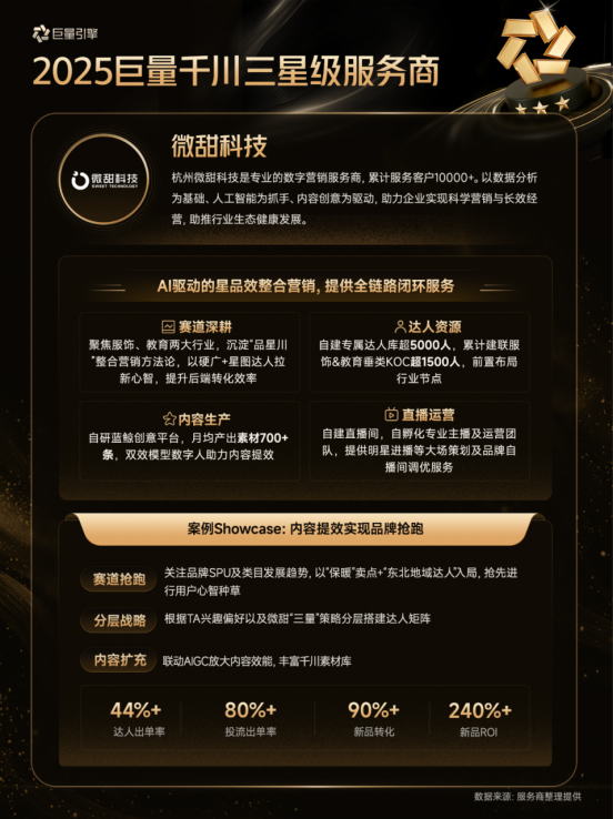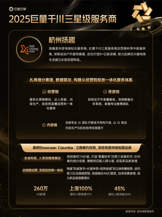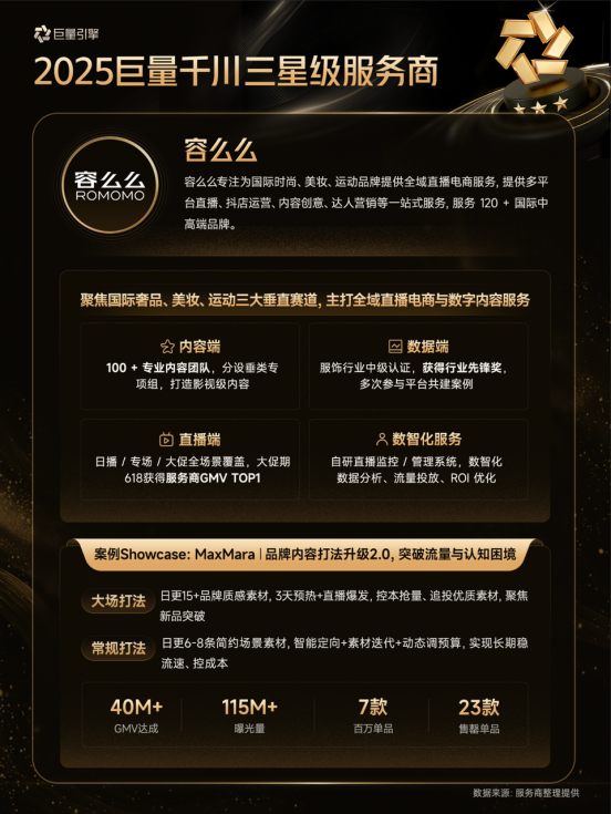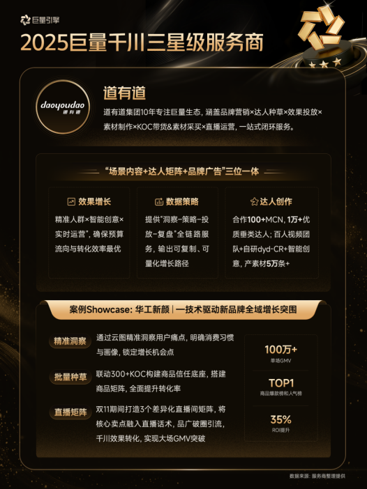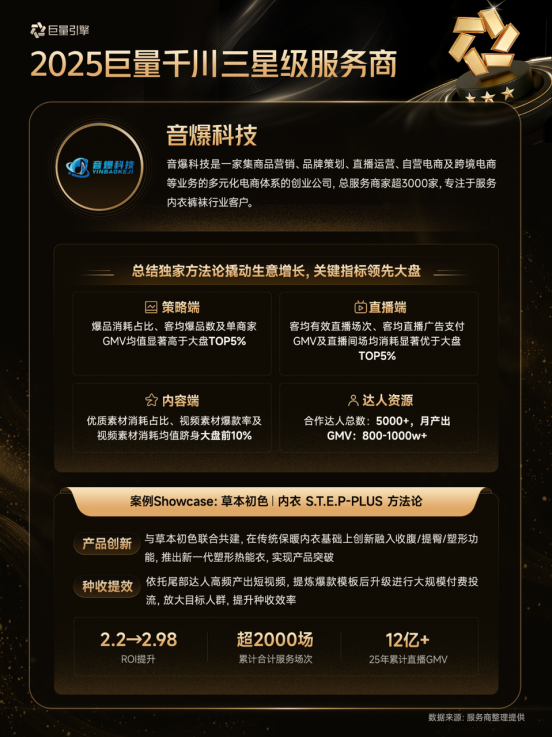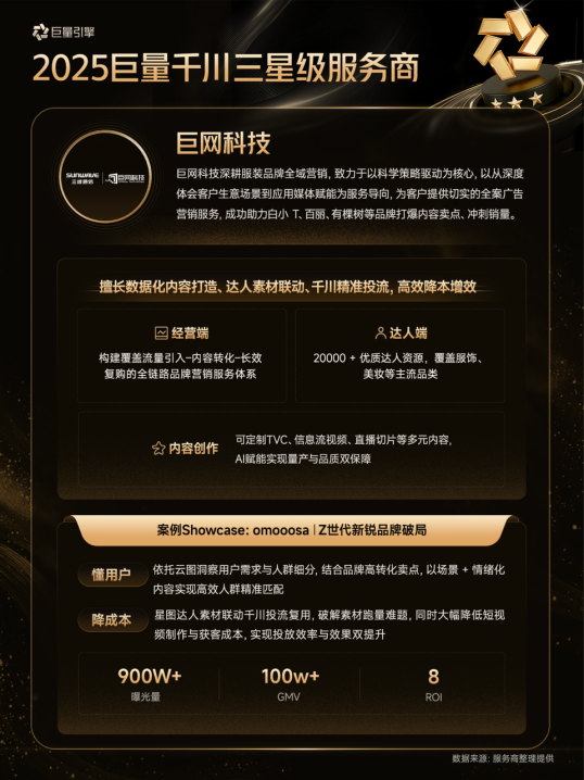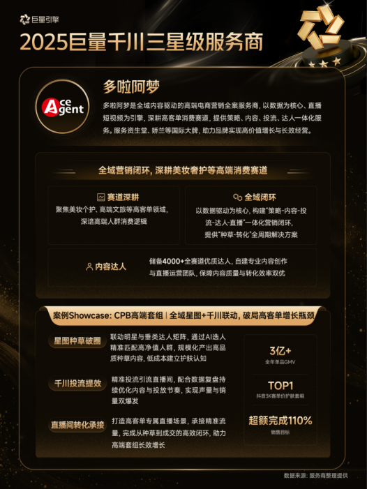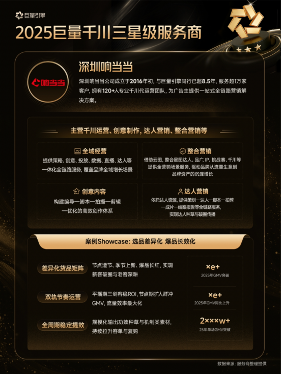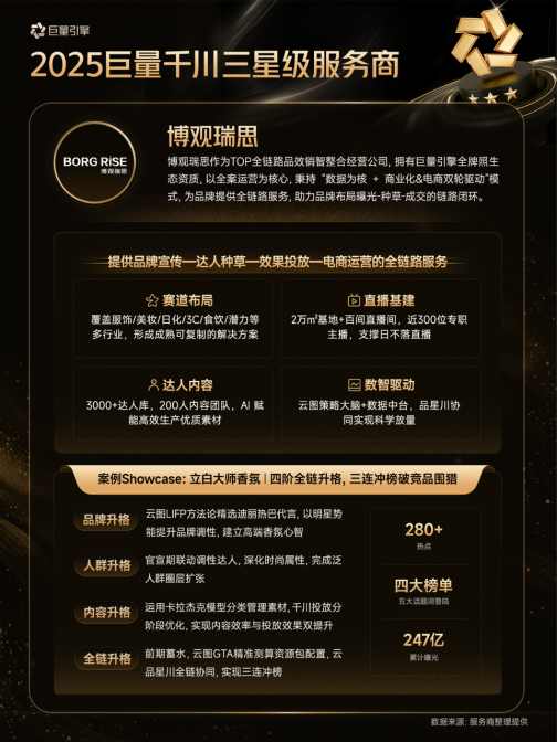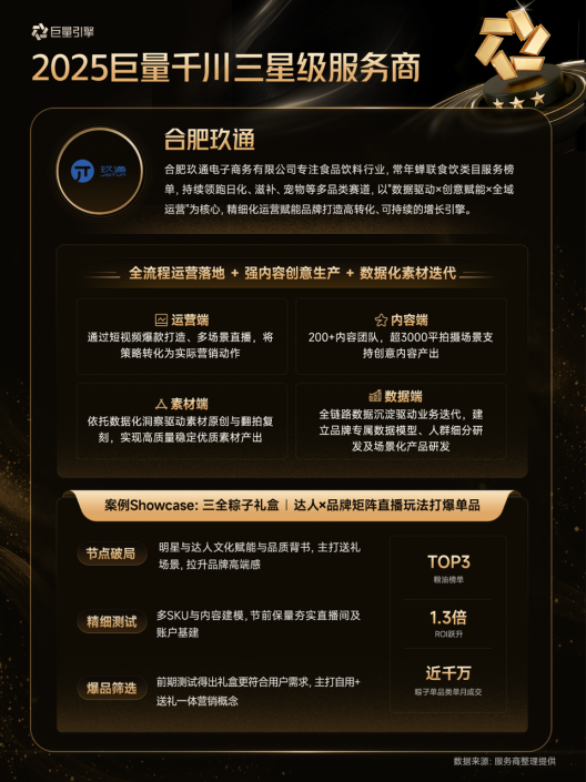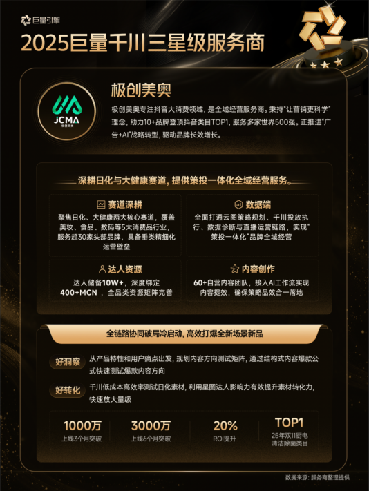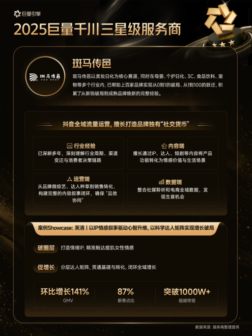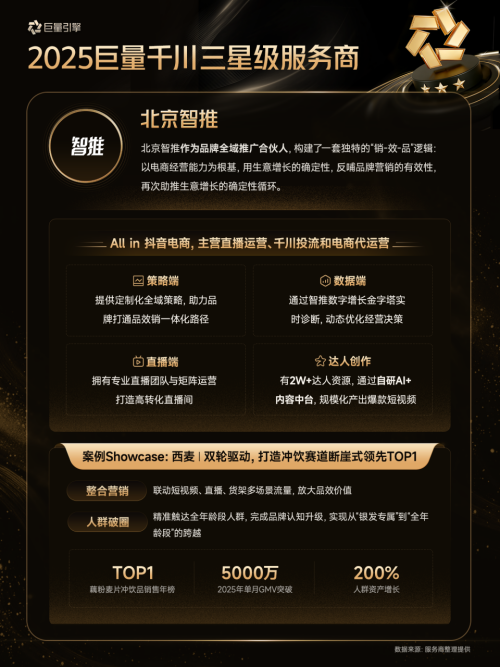 这批通过认证的高阶服务商,在内容创新破圈、直播精细运营、全域营销协同及爆品长效打造等方面具备突出优势,能为品牌方提供专业、高效的全域增长解决方案,也为行业服务能力提升树立了清晰标杆。据悉,巨量千川星级认证体系凭借标准化、阶梯式的机制,推动营销向多样化、专业化方向发展,成为电商领域衡量服务商综合能力的重要参考。