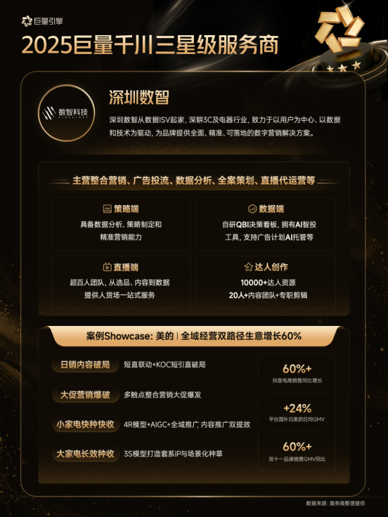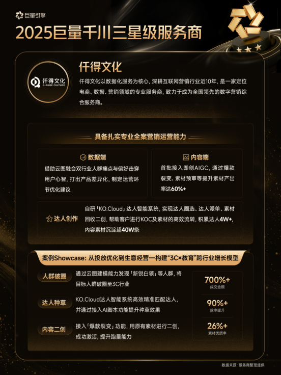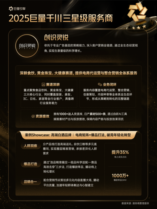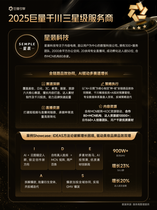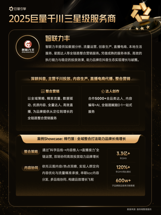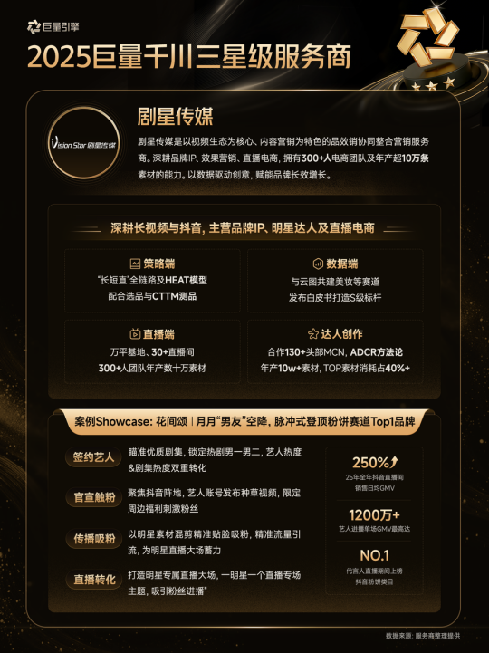 近日,2025年度巨量千川三星级服务商认证名单正式公布。本次评定围绕创意制作、直播运营、整合营销、商品营销四大核心能力展开,共有28家服务商凭借出色的专业水平与综合业务表现成功入选。