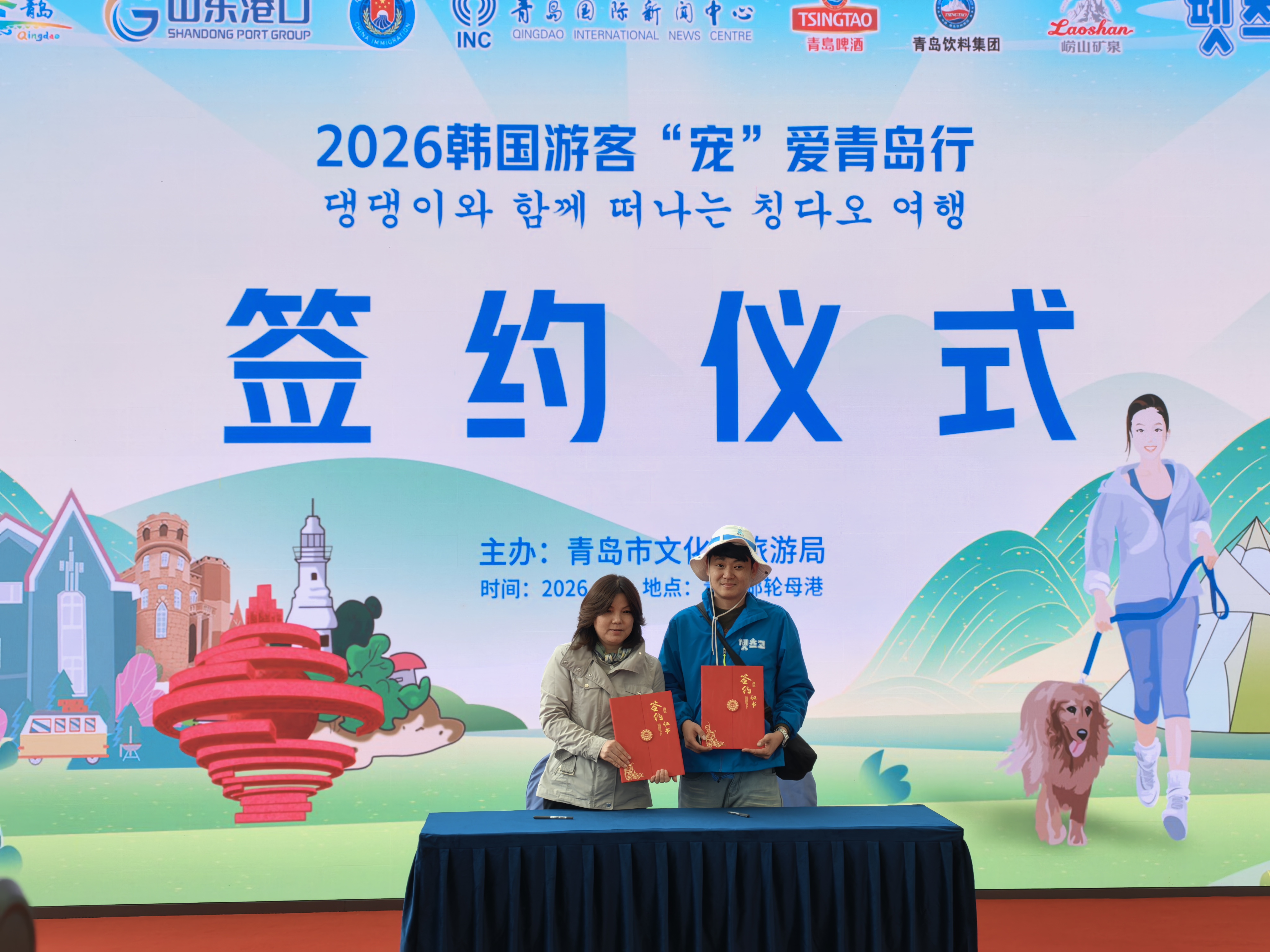 仪式现场,青岛全世通国际旅行社与韩国陪思狗旅行社正式签署战略合作协议。双方将聚焦宠物旅游这一高潜力细分市场,在特色产品研发、服务标准共建、境外精准营销等领域开展深度合作,联手打造兼具青岛特色与宠物友好属性的精品旅游线路,全力将青岛打造成为韩国爱宠人士出境游的首选目的地。