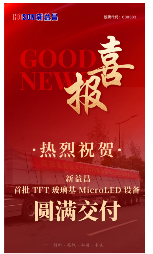 喜报丨新益昌首批TFT玻璃基MicroLED设备圆满交付