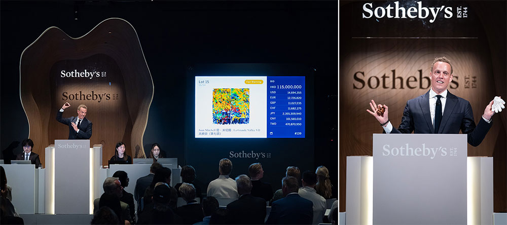 · 琼・米切尔刷新亚洲拍卖纪录:《大峡谷(第七号)》由网上竞投者以137,350,000港元投得(估价:110,000,000至300,000,000港元),荣登本季亚洲拍场最高成交拍品。此佳绩不仅刷新艺术家亚洲拍卖纪录,更成为亚洲拍场上最高价的女性艺术家作品