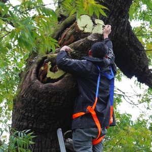 经过反复论证,22株古树的“一树一策”治疗方案最终敲定。从树冠整理到树洞修复,从防腐处理到土壤改良,从根系复壮到营养补充,每一个环节都量身定制、精准施策。随后,县林业局组织施工单位历时两个月,通过一系列抢救复壮措施,同步加装避雷针、修建防护栏、建设支撑杆,全面完成22株一级古树的抢救复壮工作。