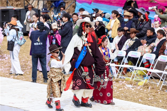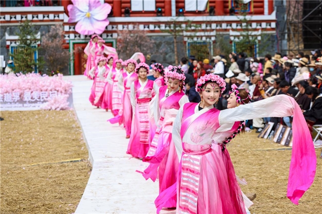 开幕式后的文艺展演同样精彩纷呈。整场演出以“杏花归处是吾乡”为主题,分为“草原牧歌”“沃野耕乡”“幸福花开”三个篇章,由道孚县各界群众代表联袂出演,时装秀、本土服饰情景秀与特色歌舞交织上演,生动呈现出当地独有的人文风情与精神风貌。