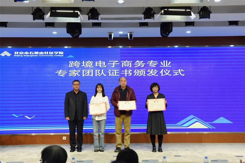 在开学典礼上,北京市石景山业余大学于志勇校长向环球网校专业老师颁发跨境电子商务专业专家团队成员聘书。这不仅是对专家团队专业贡献的肯定,也标志着校企协同育人机制正式进入常态化运行。