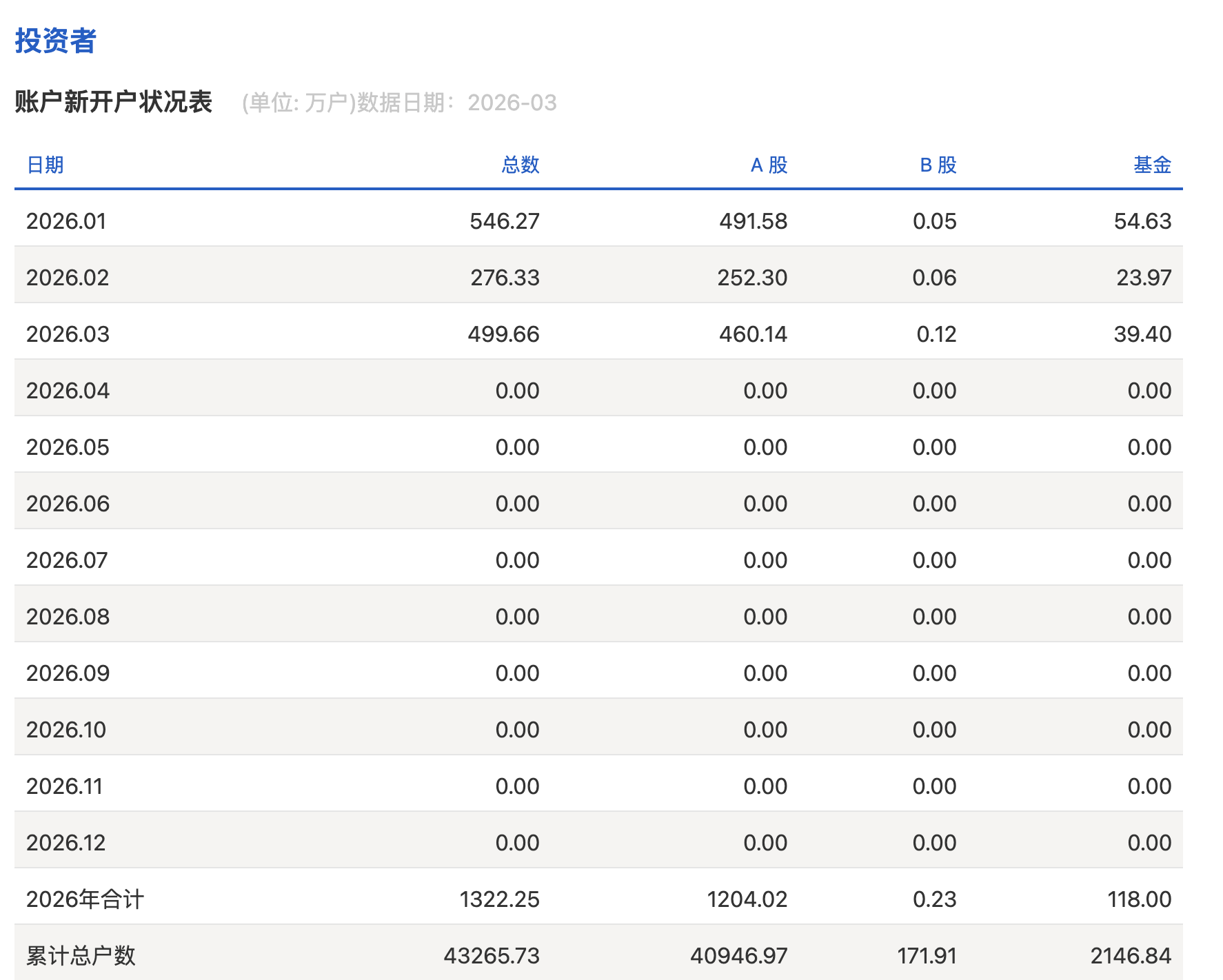 上交所数据显示,2026年3月A股新开户460.14万户,2月A股新开户252.3万户。