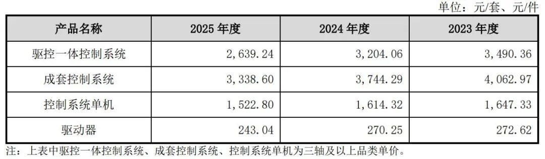 尽管近年来业绩持续增长,但受行业市场竞争激烈等因素影响,新睿电子主要产品的销售单价却均呈下降趋势。比如驱控一体控制系统的单价从2023年的3490.36元/套降至2025年的2639.24元/套,降幅达24.38%。