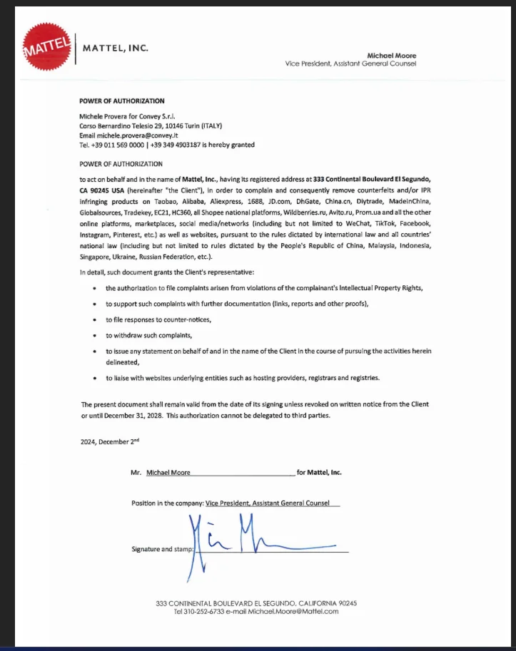 来自美泰的侵权文书