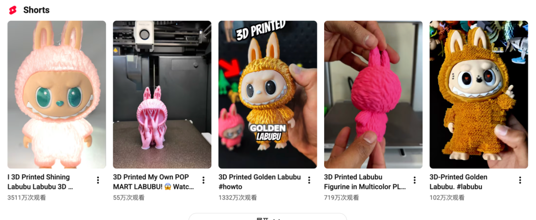 3D打印 LABUBU 相关视频仍然大量留存于互联网中