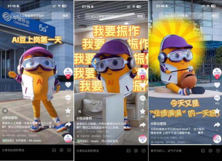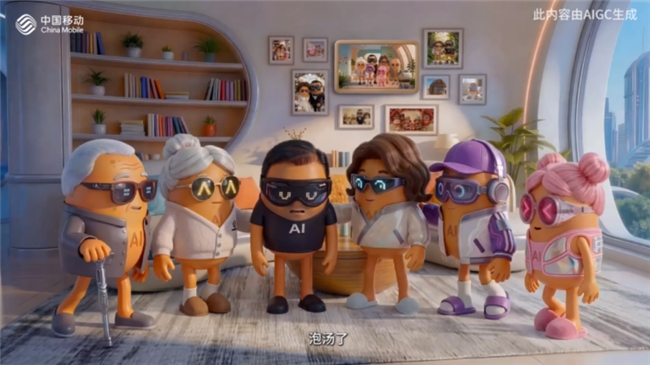 就连一向高冷的通信行业,也不乏突破性探索——例如软银的"白户家"IP,以白色柴犬“爸爸”的形象成为国民级符号,用接地气的家庭叙事拉近距离。而近期中国移动推出的《AI豆豆》动画短片,更是借AI漫剧的热潮跳出“专业高冷”的行业标签,塑造出敢吐槽职场内卷、渴望松弛躺平的鲜活的AI豆IP形象。其推出的6集原创动画,以AIGC技术打造,扎根家庭日常与烟火场景,聚焦年味变淡、职场内耗等大众共性议题,用细碎的生活叙事替代生硬的品牌宣传,靠真实感引发年轻用户自发讨论,成为通信行业IP年轻化的一抹亮色。