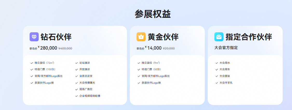 据悉,为满足不同的品牌传播与业务拓展需求,大会推出了多元化的招商合作方案,包含标准赞助、增值赞助、会务赞助三种模式。标准赞助分为“钻石”与“黄金”两个等级,企业可根据品牌传播与业务拓展需求,获取涵盖展位展示、广告投放、数字营销及媒体传播在内的综合权益,实现高效曝光与精准触达。增值赞助模式则支持企业围绕特定环节进行定制化合作,强化产品与品牌露出。同时,大会还开放会务类赞助,包括饮用水供应、用车保障、伴手礼及服装定制等多类场景,企业可灵活选择赞助品类,实现品牌曝光与价值传递。