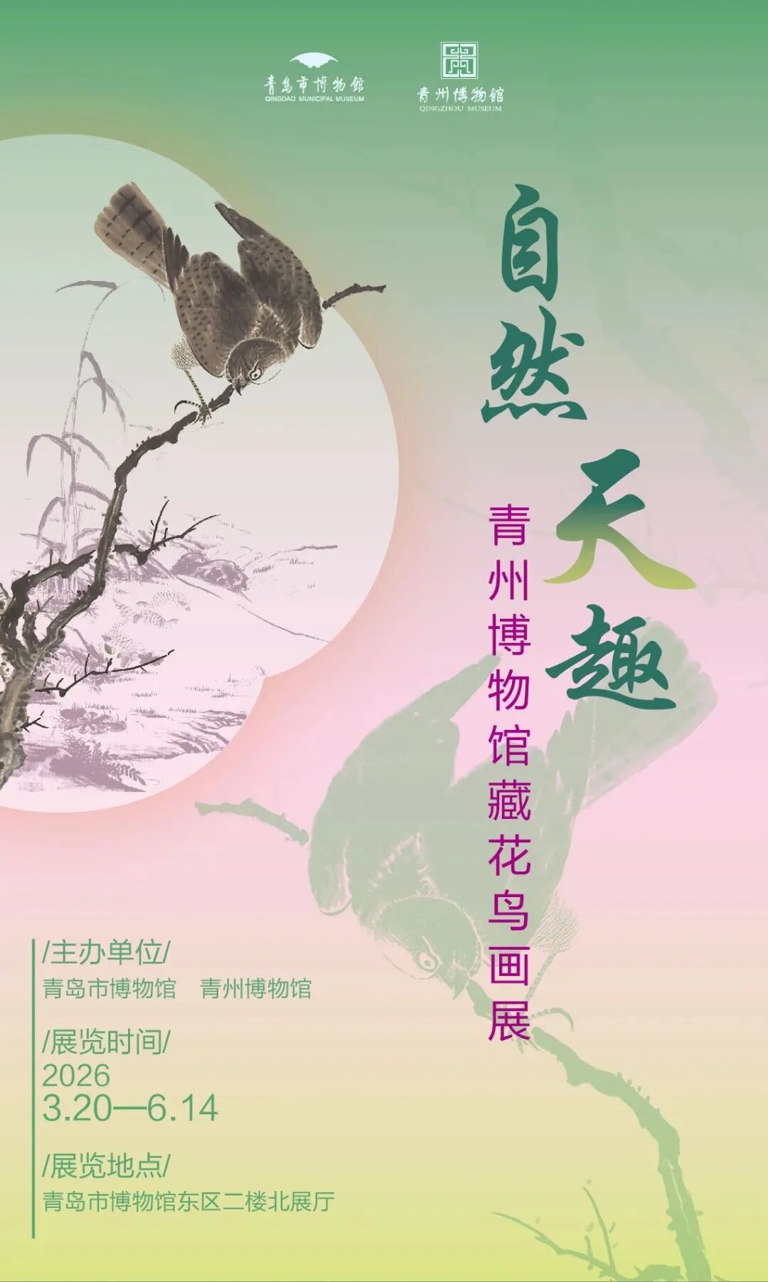 青岛市博物馆推出自然天趣——青州博物馆花鸟画展;青岛市美术馆推出“甲天下——苏州、青岛风景画”作品展;全市各大文博场馆,同步推出配套体验活动,全面涵养城市文化底蕴。