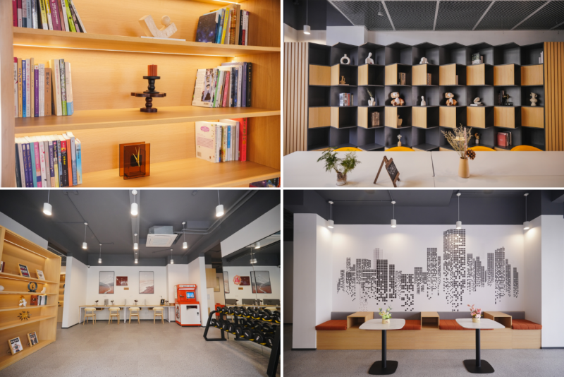 值得一提的是,玥里二店在提供高品质居住环境的同时,亦倾注人文关怀,悉心服务租户。在公共区域设有会客休憩区、灵感共创区、静心自习区、活力多功能区等,满足居民会客、创作、学习、运动等多元需求。