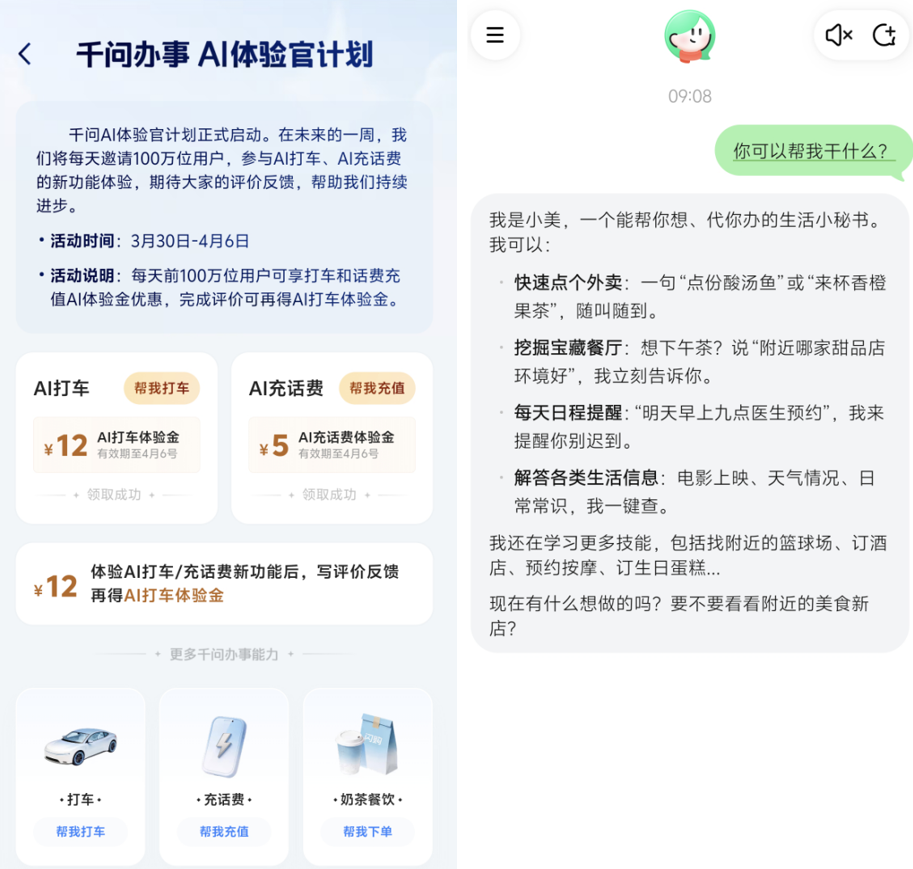 阿里发力C端的千问锚定「AI办事」,在集成购物、外卖、订票等能力之后,又与自家的高德合作,提供AI「打车」服务;发力B端的「悟空」,用AI将自家的钉钉重做了一遍,并将阿里的to B能力统一放进去。
