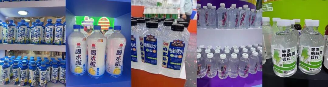 走进密集排列的展位,几乎一半以上的展位都陈列着新推出、或即将上市的电解质新品。只要稍作停留,就会有品牌销售们积极咨询渠道合作可能性。