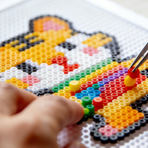 拼豆的耗材主要是豆子,消耗情况根据作品尺寸、立体程度、返工次数而定,在拼豆过程中,还需要根据消耗情况补充特定颜色的豆子。豆子的品质决定了热熔后的呈现效果,单价波动较大,千颗豆子的单价在1元到6元之间。