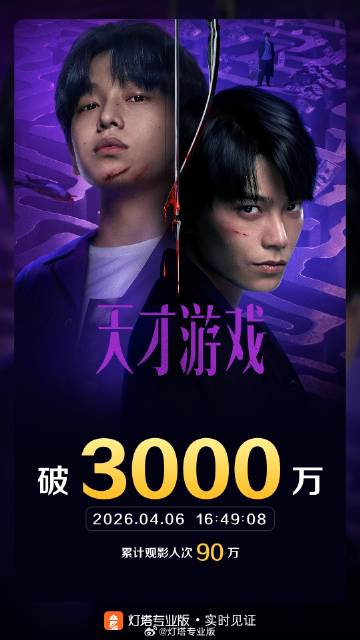 据灯塔专业版实时数据,截至4月6日16时49分,影片《天才游戏》票房突破3000万。