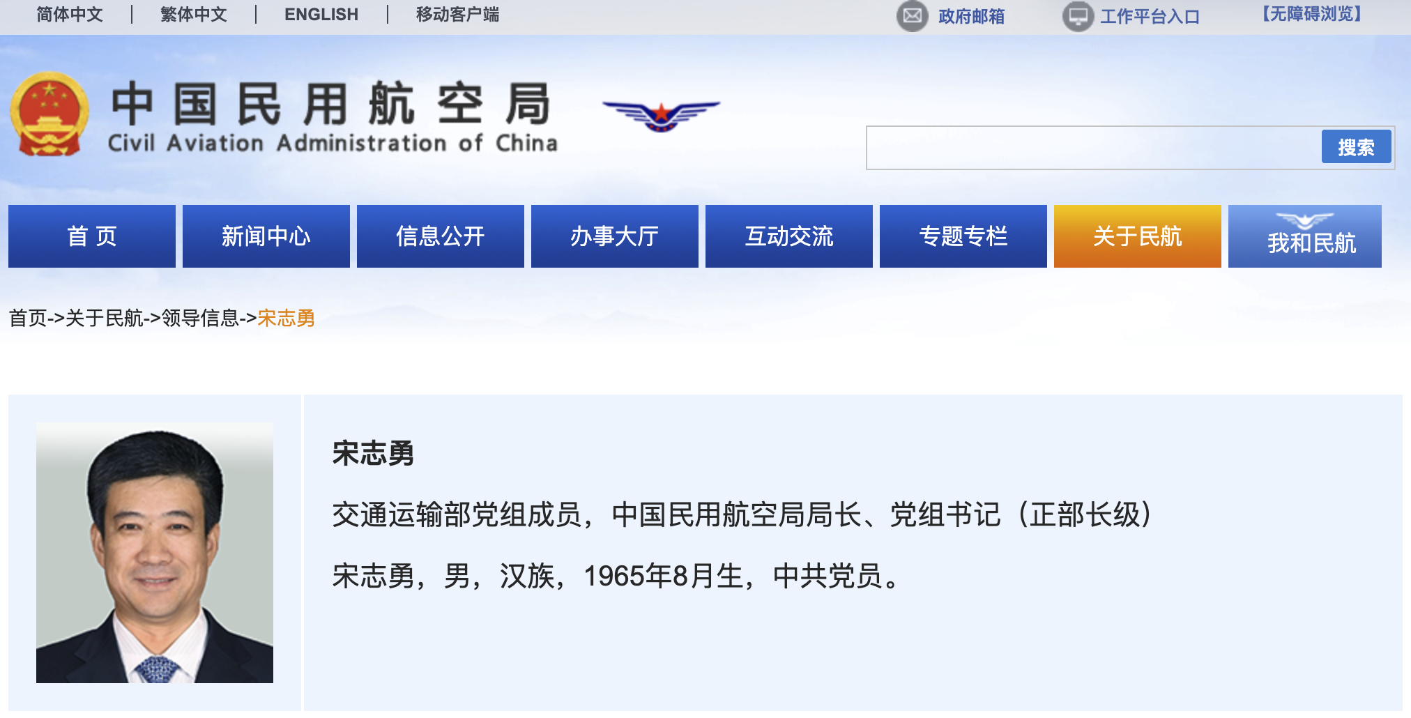中国民用航空局官网更新显示,交通运输部党组成员,中国民用航空局局长、党组书记宋志勇,已明确为正部长级。