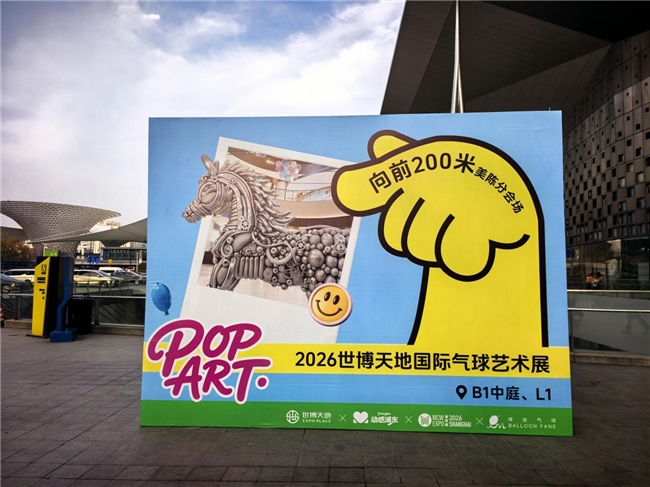 在一路之隔的世博天地设置了面向市民的“POP ART 2026上海世博天地国际气球艺术展美陈展分会场气球展区”。近40位来自全国各地以及新加坡等地的世界级气球大赛冠军、气球艺术家,花费4天时间全手工打造了这场艺术展。世博展览馆展期于3月31日闭幕,但世博天地的气球展将持续到4月15日。