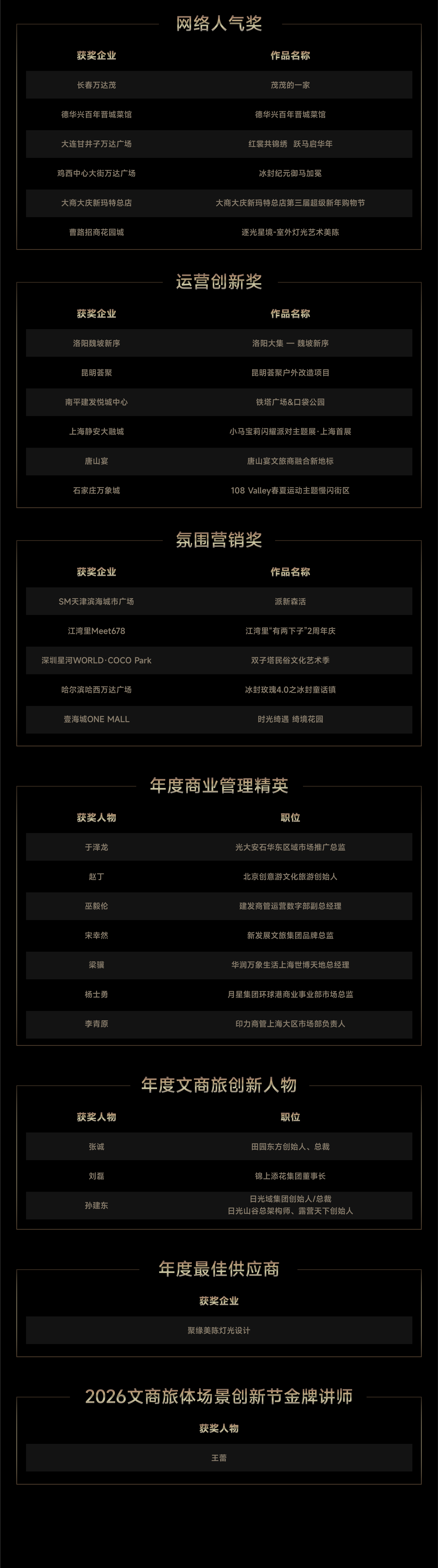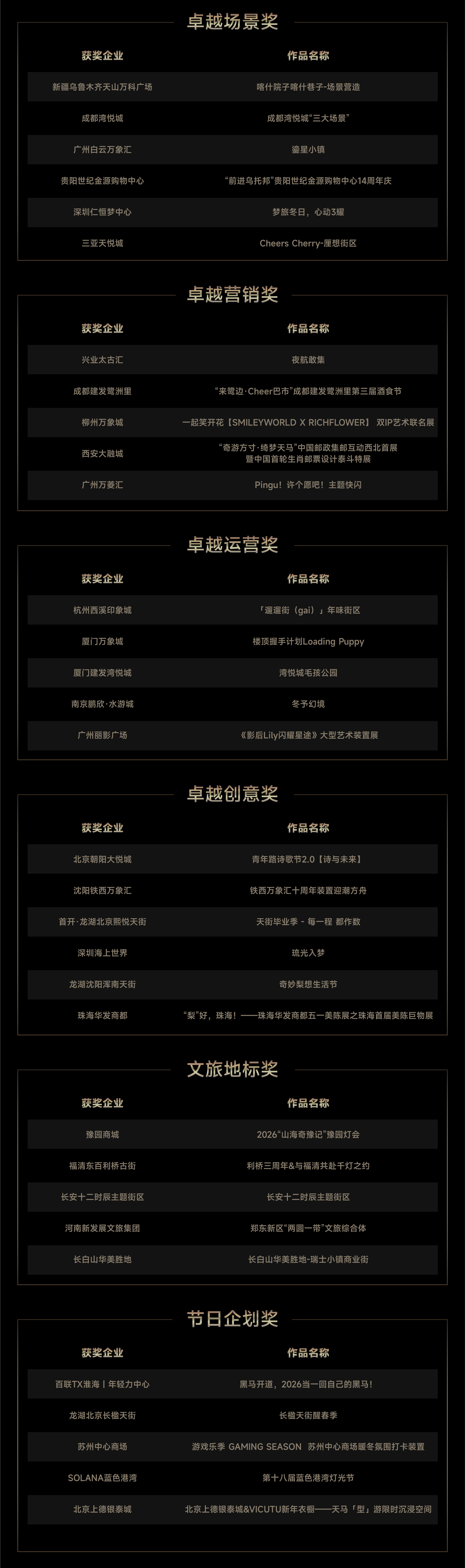 我们共同见证了“让场景有爱”从主题化为真切共鸣,以“文、商、旅、体”深度融合的实践,回应时代对美好生活的向往。这份共同的探索与沉淀,不仅开拓着中国商业美学与场景创新的新疆界,更深刻诠释了行业的价值与使命。