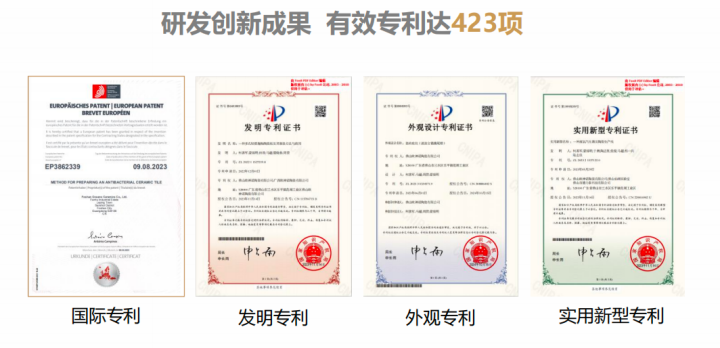 两次斩获「中国专利奖优秀奖」,其中独家研发的纳米无机复合抗菌技术,是建陶行业抗菌领域首个获得该国家级荣誉的技术。