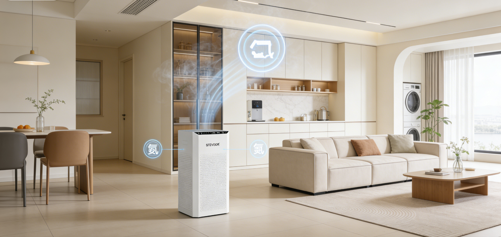 4. 大客厅/开放式空间(40㎡以上):需要甲醛CADR ≥ 500 m³/h的机型。斯帝沃A9(770 m³/h)、美的RX800 Pro(631 m³/h)和华为智选S820(605 m³/h)均可胜任。