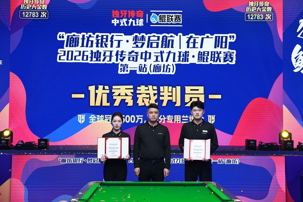 随着颁奖仪式的落幕,2026独牙传奇中式九球·鲲联赛第一站(廊坊)正式收官。未来,鲲联赛将继续深耕青少年台球领域,持续打造高品质、高影响力的赛事IP,助力更多台球少年从这里启航,逐梦远方。