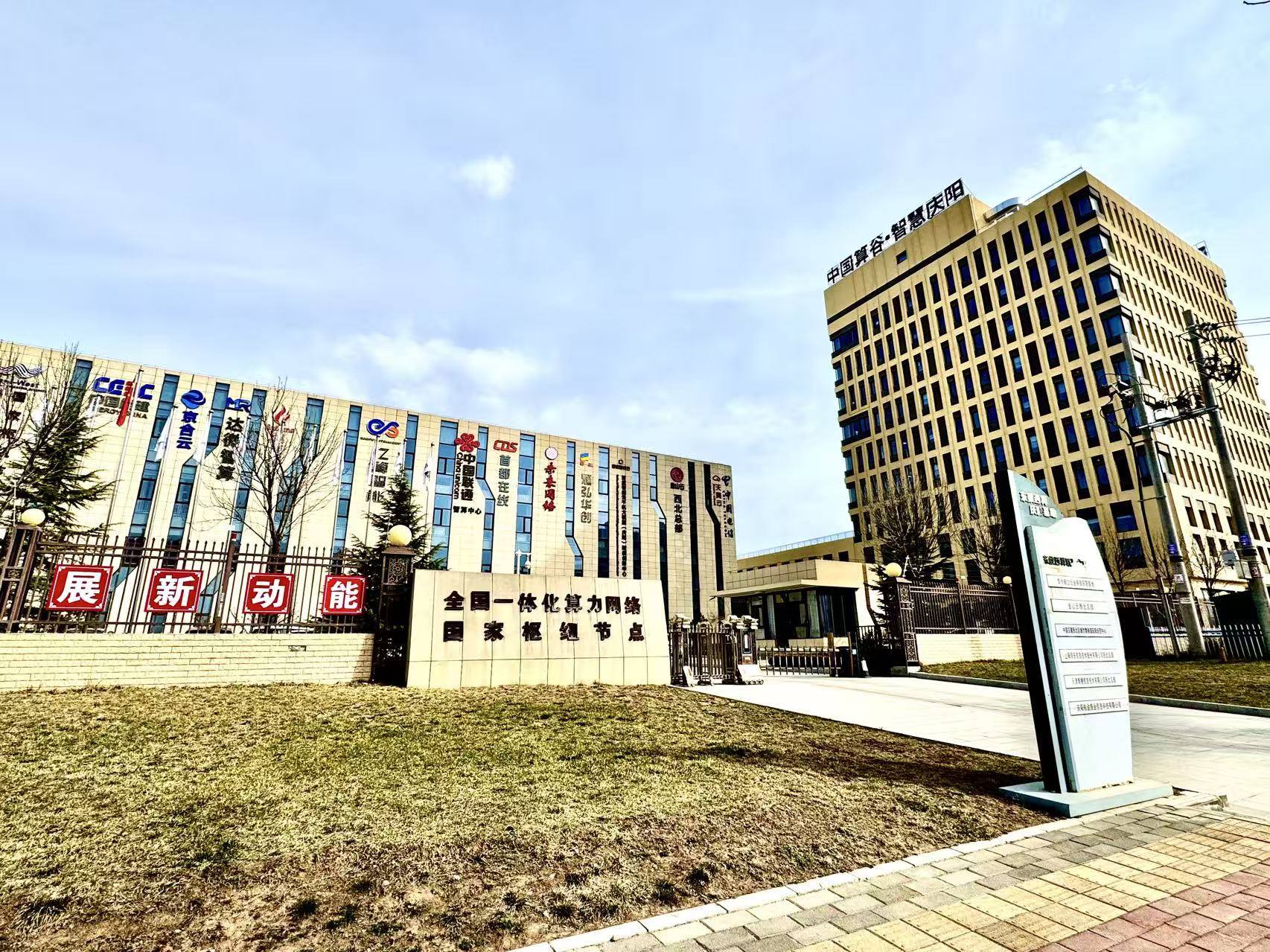 从中国能建项目园区的围墙向外望去,金山云、中国电信、秦淮数据的数据中心大楼也伫立其间。庆阳已成建数据中心11个,建成国产万卡算力集群,算力规模突破14万PFlops。
