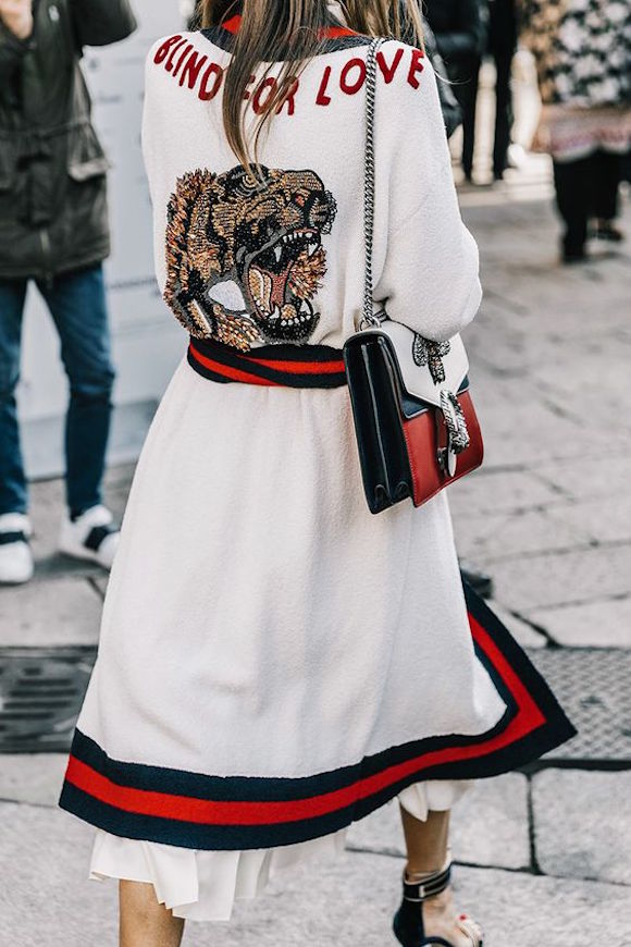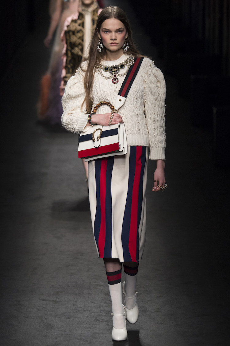 当下Gucci 2017早秋系列正是延承了这一织带经典元素,不过风格上倒是更俏皮些。