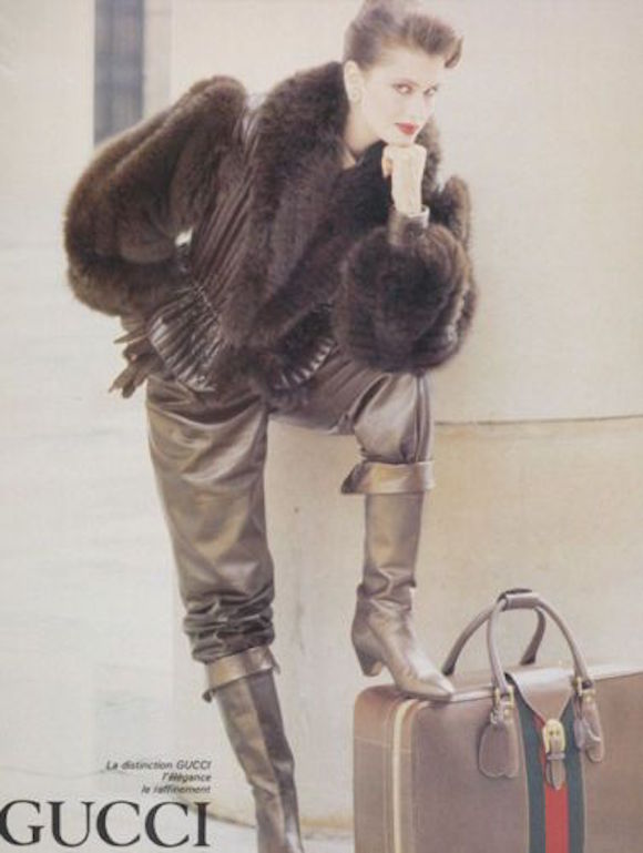 从1980年代的广告来看,Gucci的织带元素一直是主打。不过因为家族股权之争与经营不善,Gucci在1980年代末到1990年代初声誉逐渐下滑。