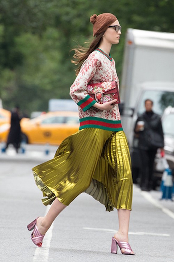 不过窘境一切都在Alessandro Michele的设计下有所扭转。这位天马行空的设计师一改Gucci老成死板的旧式优雅风格,用有点Geek又有点少女式浪漫的风格重新妆点Gucci。